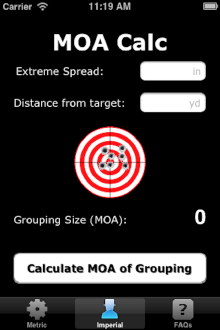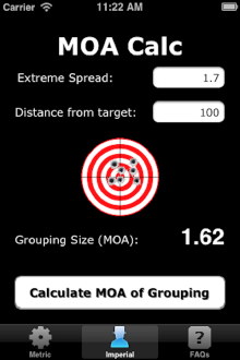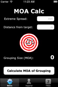 The app has both metric and imperial MOA calculators.